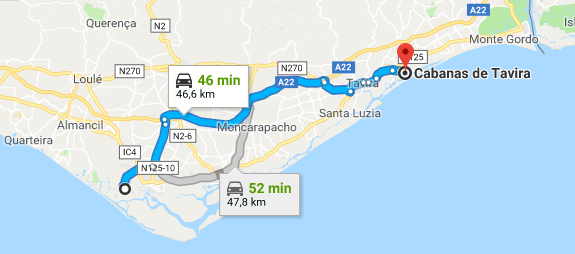 Om du vill upptäcka fler byar kan du ta tåget som går mellan Faro till Vila Real de Santo António. Stationen Conceição ligger cirka en kilometer från Cabanas de Tavira. Du kan också åka båttaxi till flera orter.