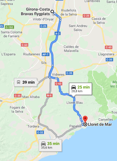 Girona-Costa Brava flygplats ligger cirka 12 kilometer söder om staden Girona. Det enklaste sättet för dig att komma till Lloret de Mar är genom att boka en shuttle eller en privattransport på Shuttle Direct.