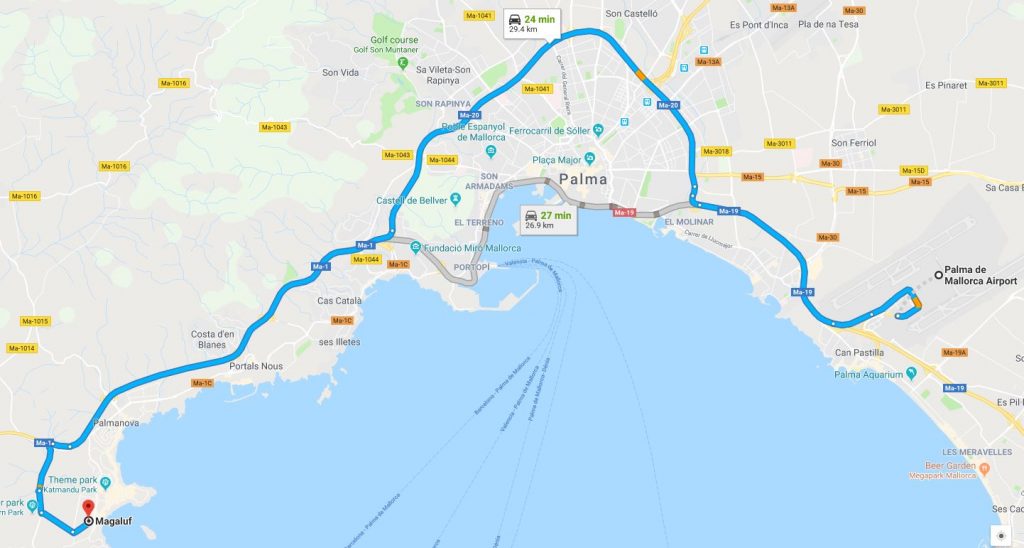 - PMI to Magaluf Distance: 18 kilometres